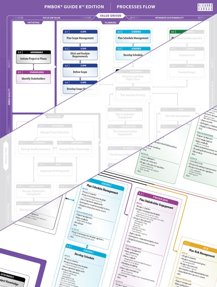 You will receive a link to download the Processes flow infographic and its Canvas version, which you can print and make your own version to better understand all the new concepts presented in the PMBOK® Guide 8th edition.